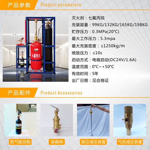 外貯壓(備壓)式七氟丙烷氣體滅火系統(tǒng)使用的場(chǎng)合與貯壓式七氟丙烷氣體滅火系統(tǒng)相同。系統(tǒng)組成及原理上有所不同,貯壓式七氟丙烷氣體滅火系統(tǒng)與高壓氮?dú)赓A存在同一個(gè)容器內(nèi),藥劑是靠藥劑瓶?jī)?nèi)高壓筑氣輸送到防護(hù)區(qū)的:外貯壓(備壓)式七氟丙烷氣體滅火系統(tǒng)藥劑和高壓氮?dú)夥珠_(kāi)貯存在不同的容器內(nèi),有火情時(shí)氮?dú)鈫?dòng)瓶組接收到滅火控制器的信號(hào)釋放氮?dú)猓獨(dú)怛?qū)動(dòng)瓶組為藥劑輸送到防護(hù)區(qū)提供穩(wěn)定持久的壓力源。